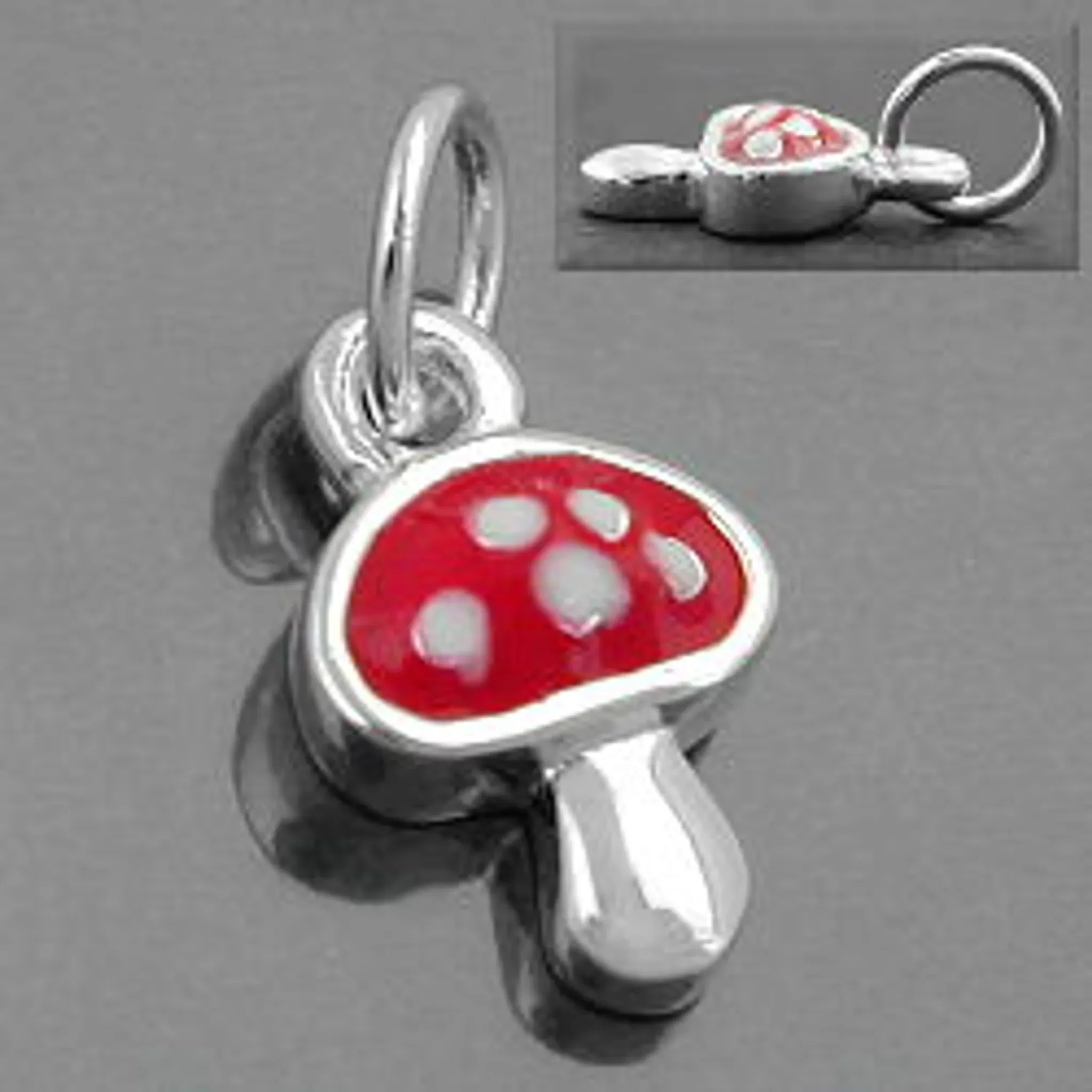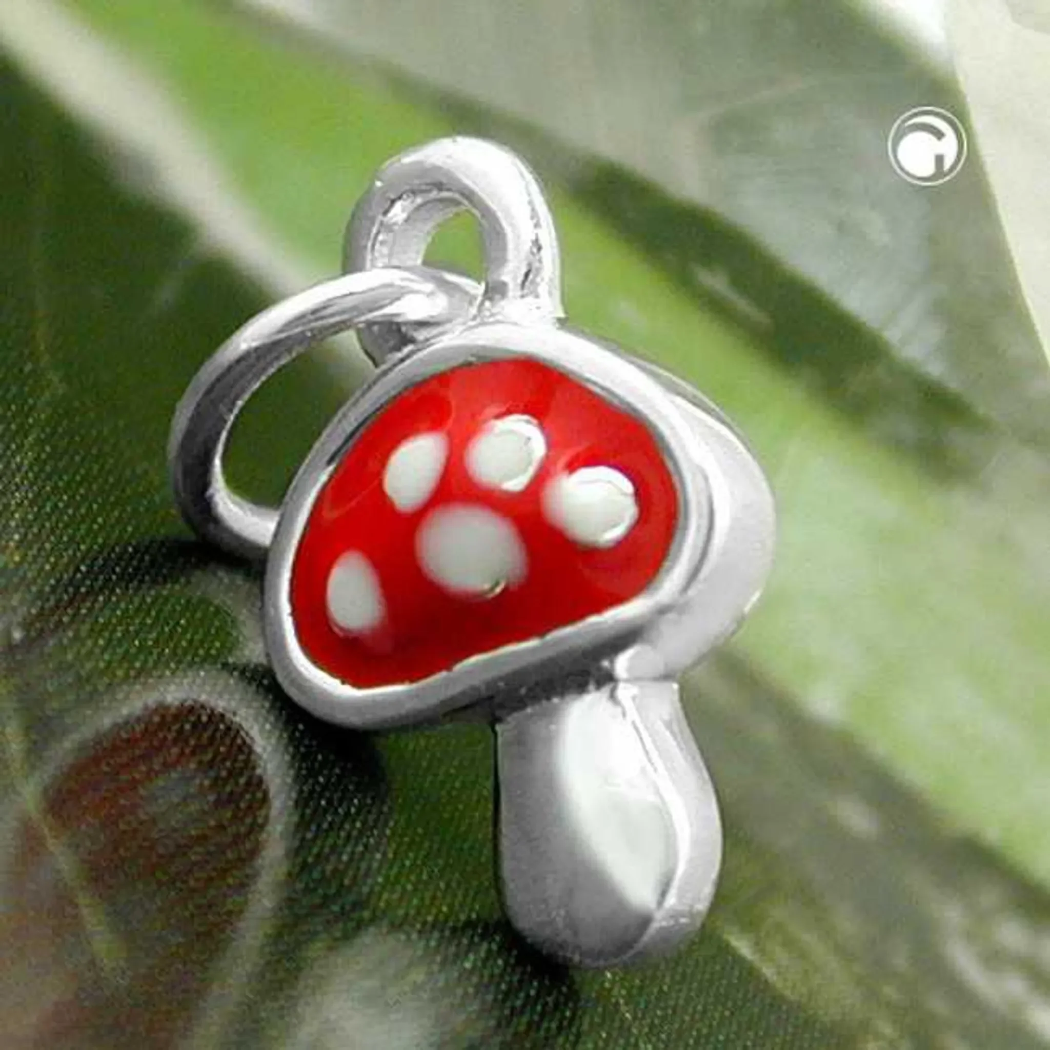 Produktinformationen "Anhänger Fliegenpilz 12×8 mm – Sterling Silber 925, rot-weiß emailliert"