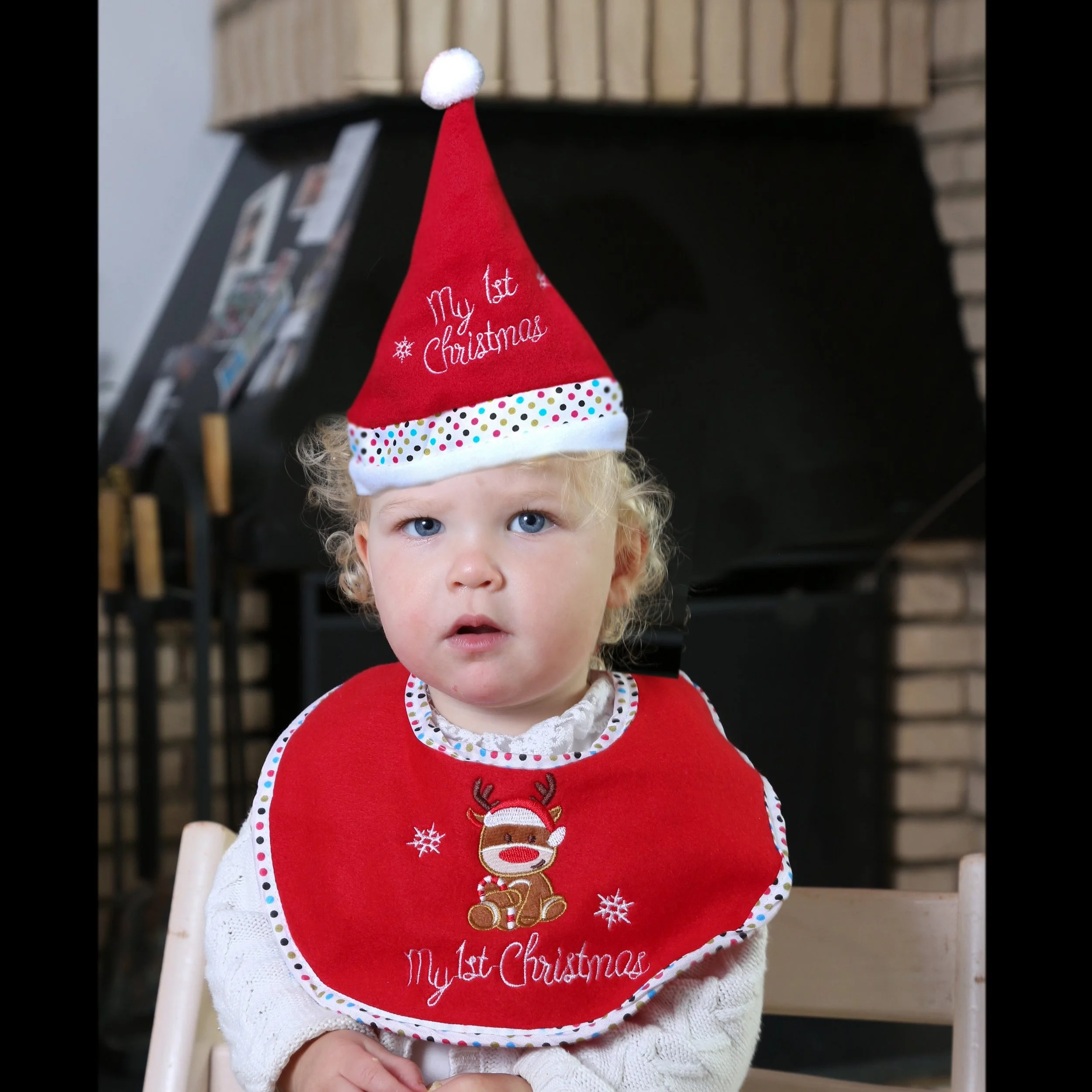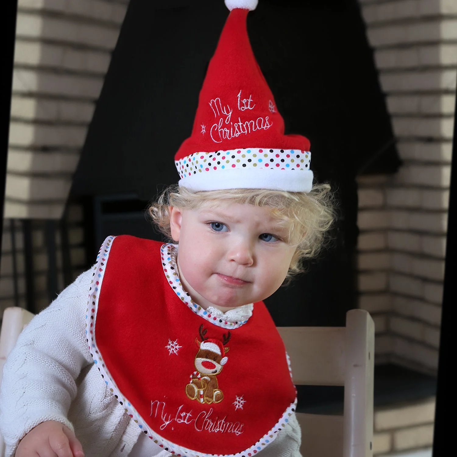 Dieses zauberhafte Baby-Set bestehend aus einer roten Mütze mit Bommel und einem Lätzchen mit Rentiermotiv begleitet Ihr Baby liebevoll durch das erste Weihnachtsfest. Das festliche Design mit dem Schriftzug „My 1st Christmas“ macht das Set zu einem besonderen Erinnerungsstück.