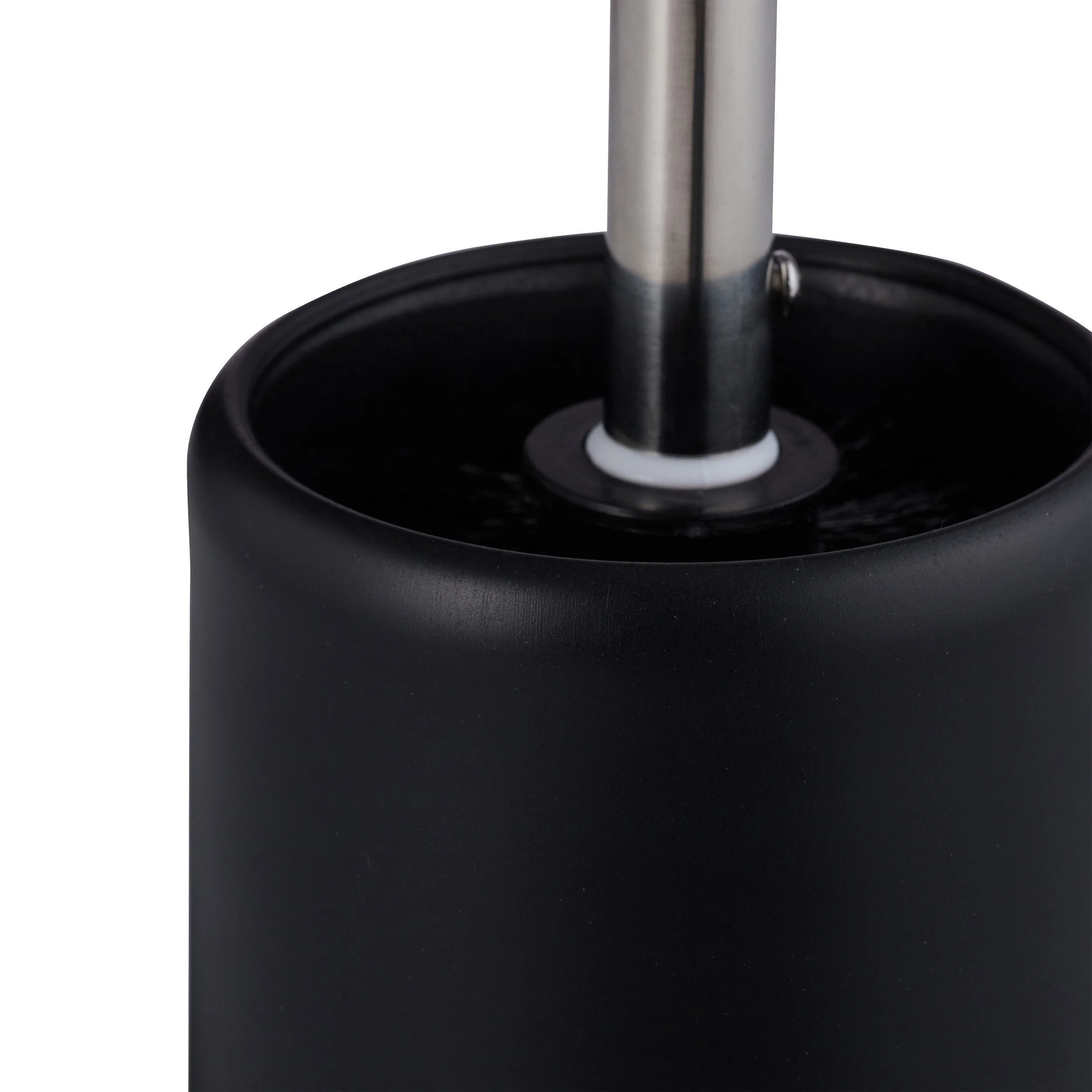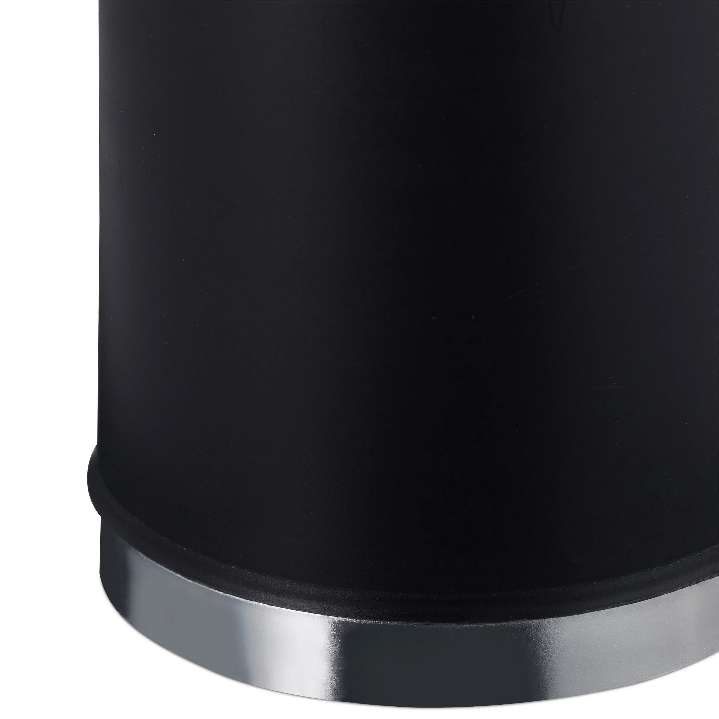 Die WC-Garnitur von RELAXDAYS überzeugt durch ihr schlichtes, modernes Design und ihre hohe Funktionalität. Sie besteht aus einem runden WC-Bürstenhalter aus schwarzem Kunststoff sowie einer Toilettenbürste mit mattem Metallgriff, der optisch harmonisch mit dem Behälter kombiniert ist.