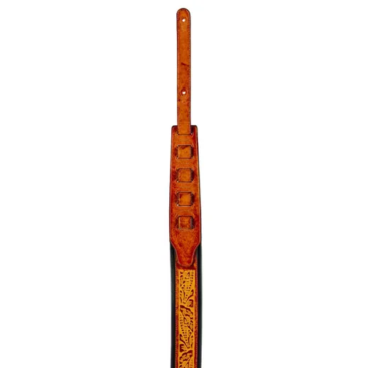 Durch die stufenlose Anpassung bis 1190 mm lässt sich der Gurt präzise auf verschiedene Spielhaltungen einstellen. Das geprägte Lederdesign im Vintage-Stil verleiht dem Instrumenten-Setup eine charaktervolle Note, die sich dezent, aber wirkungsvoll ins Gesamtbild einfügt.