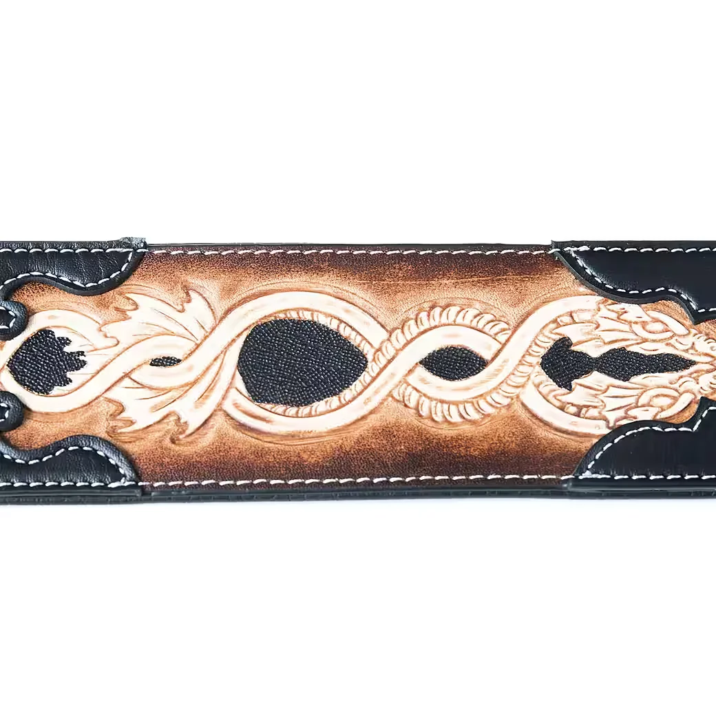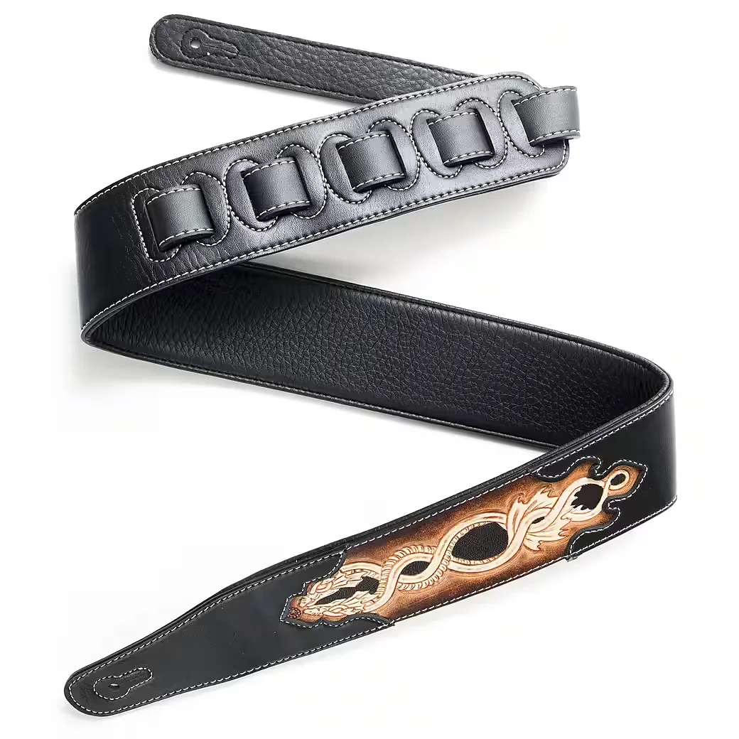 FAME Gitarrengurt Leder mit Serpent Grafik, hochwertig
