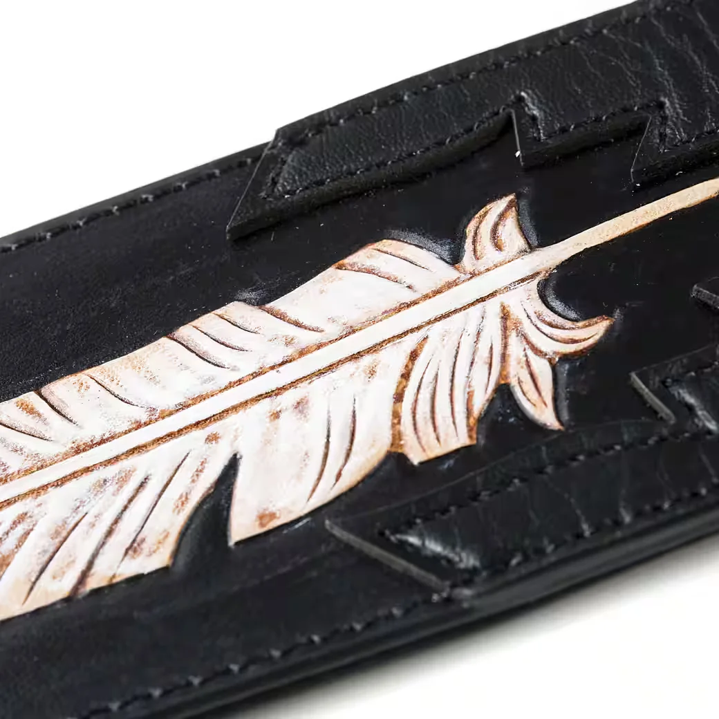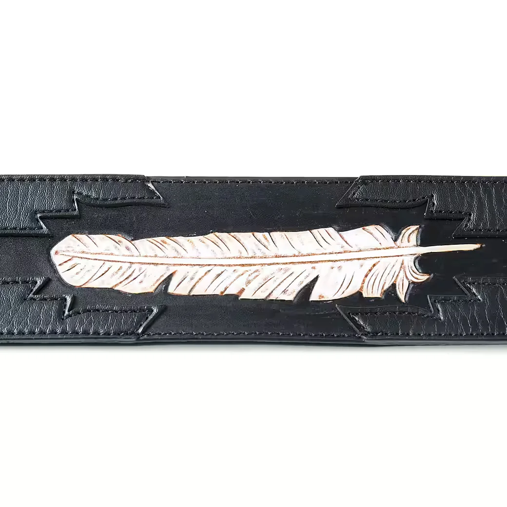 Leder-Instrumentengurt mit markanter Feather Grafik