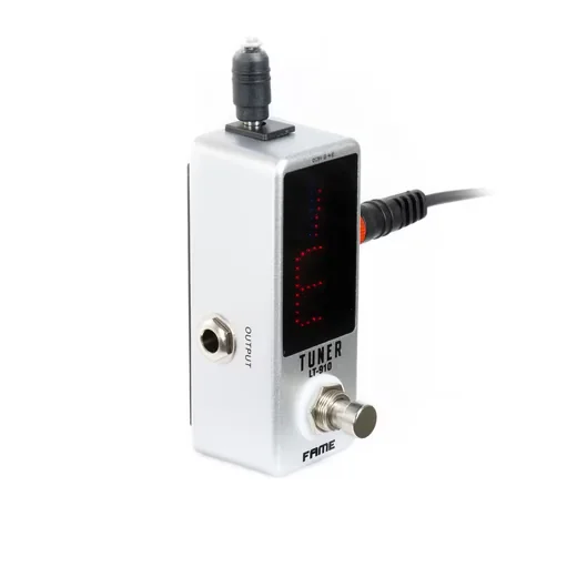 Der Fame LT-910 ist ein chromatisches Stimmgerät im Pedalformat für E-Gitarre und E-Bass. Mit einer Stimmgenauigkeit von +/- 1 Cent und einem weiten Stimmbereich von 12 Hz bis 4186 Hz richtet es sich an Musiker, die zuverlässige Ergebnisse und klare Ablesbarkeit benötigen – ob im hellen Proberaum oder auf dunklen Bühnen.