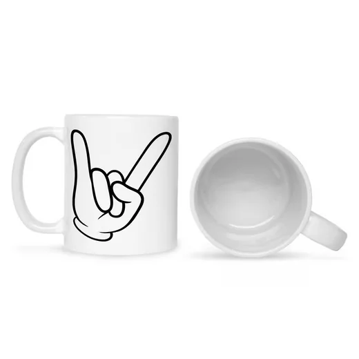 - Lieferumfang: 1x Tasse mit Motiv „Rock Hand“ in Weiß.