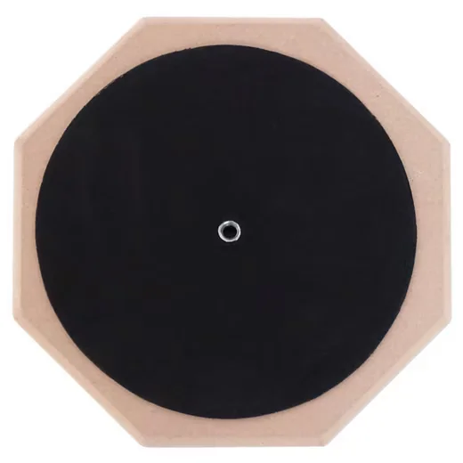Mit einem Durchmesser von 8 Zoll bleibt das Pad handlich und vielseitig platzierbar. Der Holz-Korpus sorgt für Stabilität, während die dämpfende Schaumstofffläche auf der Rückseite das Üben auf Tisch oder anderer Oberfläche ohne zusätzliches Stativ ermöglicht. Alternativ kann das Pad über das 8 mm Gewinde auf der Rückseite auf einem Stativ montiert werden.