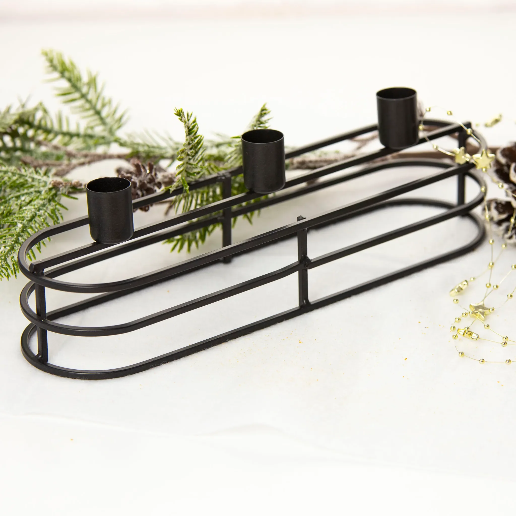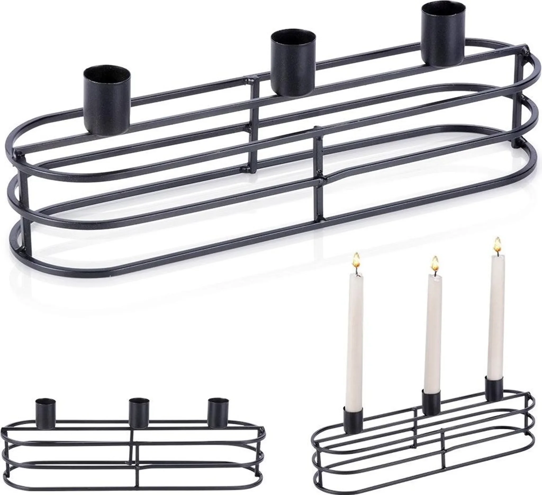 Kerzenhalter aus Metall – Schwarz, für drei Kerzen