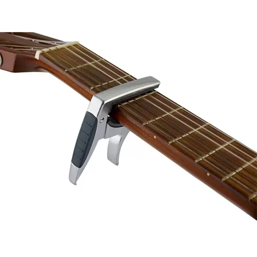Der federgespannte Klemmmechanismus lässt sich schnell und bequem mit nur einer Hand bedienen. Eine passgenaue Gummiauflage schützt das Instrument und hält den Capo rutschfest in Position – für stabile Intonation und verlässliche Ergebnisse beim Wechsel zwischen Tonarten.