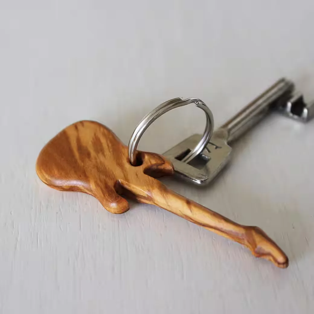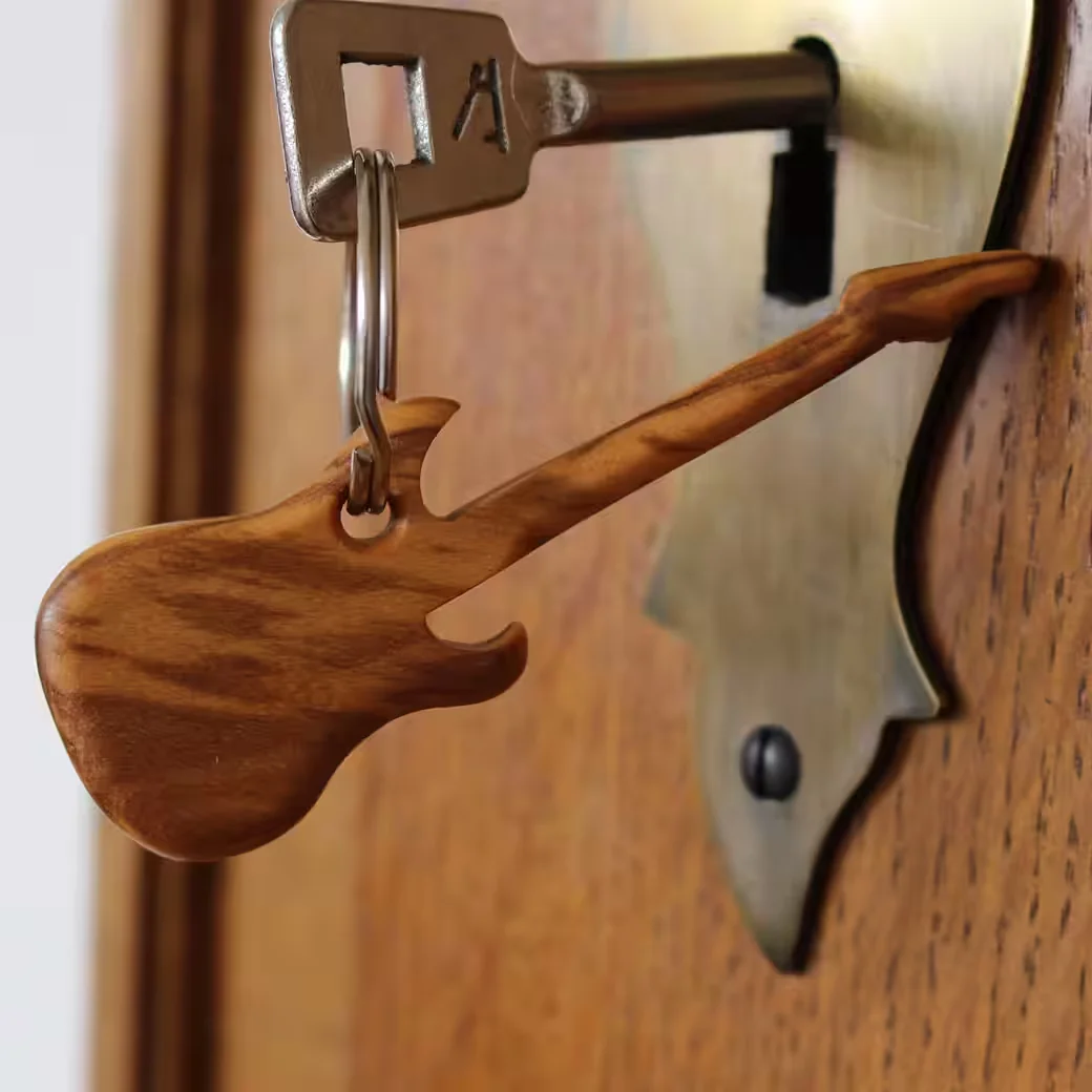 MITIENDA Schlüsselanhänger Holz E-Gitarre Gitarrenform