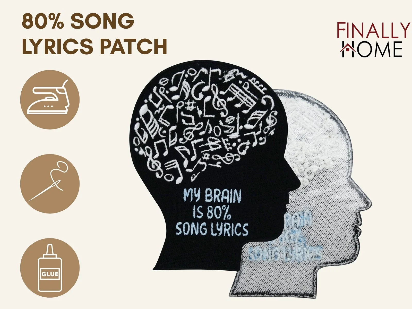My Brain is 80% Song Lyrics Aufnäher zum Aufbügeln Musik Patch