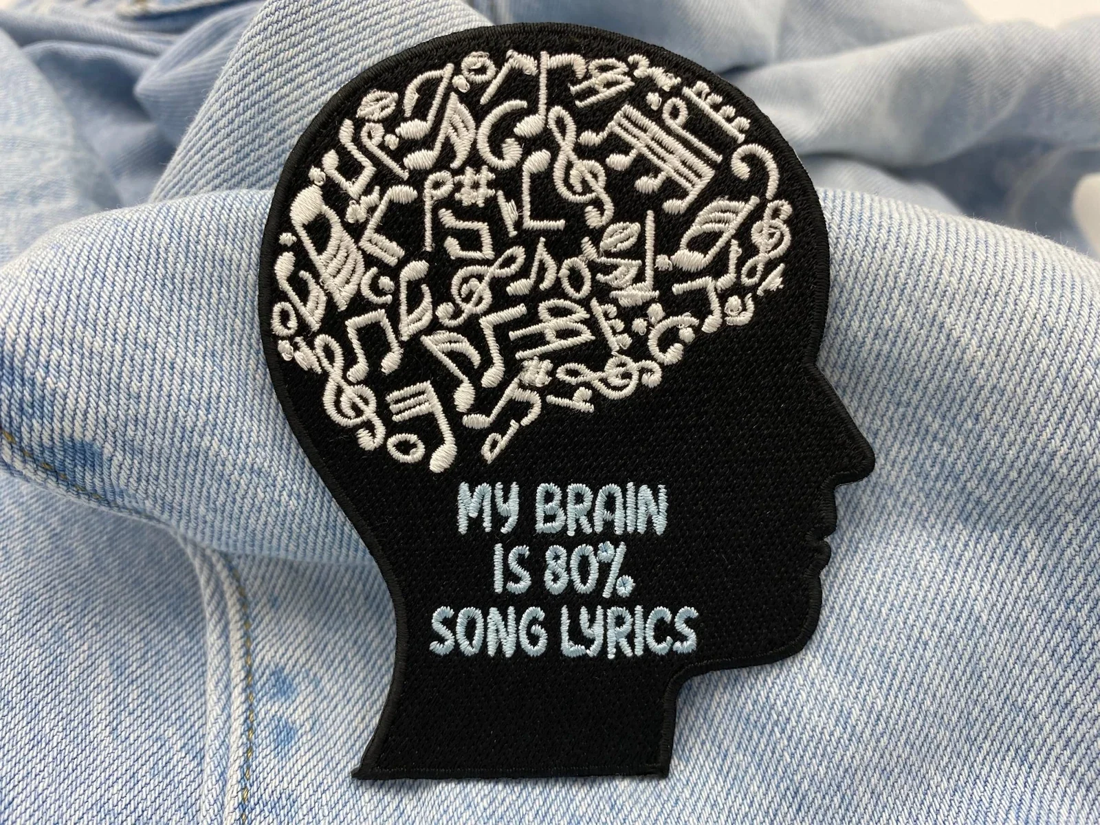 Produktinformationen "My Brain is 80% Song Lyrics Aufnäher zum Aufbügeln Musik Patch"