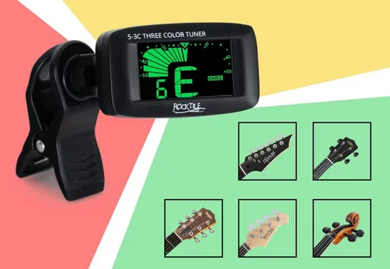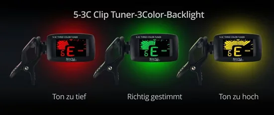 ROCKTILE 5-3C Three Color Clip-Stimmgerät für Gitarre, Bass, Ukulele
