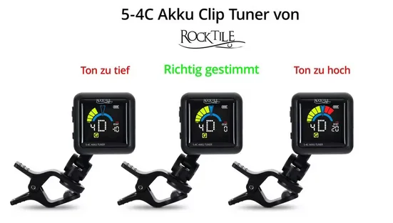 ROCKTILE 5-4C Clip Stimmgerät Akku für Gitarre Bass Ukulele Violine