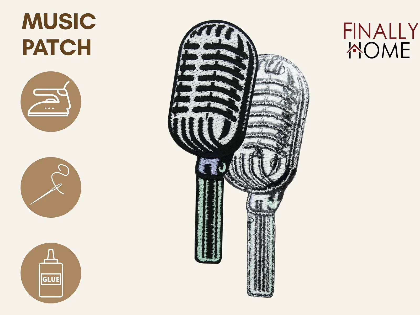 Produktinformationen "Retro Musik Mikrofon Aufnäher Bügelbild Vintage Rock Patch DIY"