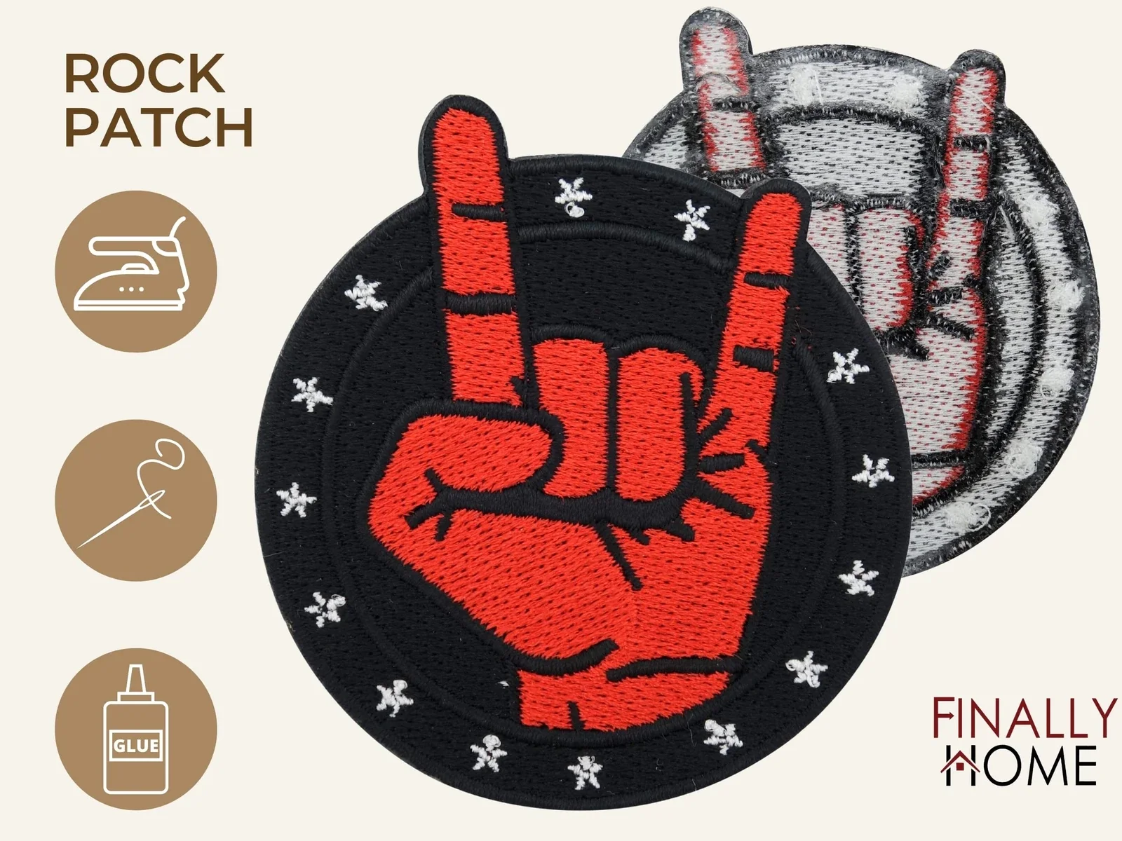 Produktinformationen "Rock Musik Band Finger Aufnäher zum Aufbügeln Bügelbild Patch"