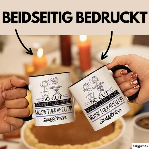 Diese Tasse ist eine durchdachte Geschenkidee für eine Musiktherapeutin – ob zum Geburtstag, zu Weihnachten oder als kleine Wertschätzung im Arbeitsalltag. Das beidseitige Motiv ist von beiden Seiten sichtbar und eignet sich damit sowohl für Rechts- als auch Linkshänderinnen. So bleibt die Botschaft am Schreibtisch, in der Praxis oder in der Teeküche stets präsent.