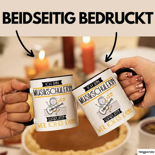 Diese Tasse mit beidseitigem Motiv eignet sich als durchdachtes Geschenk für eine Musikschülerin – ob zum Geburtstag, zu Weihnachten oder als kleine Aufmerksamkeit zwischendurch. Das Design ist auf beiden Seiten sichtbar, sodass es sowohl in der rechten als auch in der linken Hand gut zur Geltung kommt.