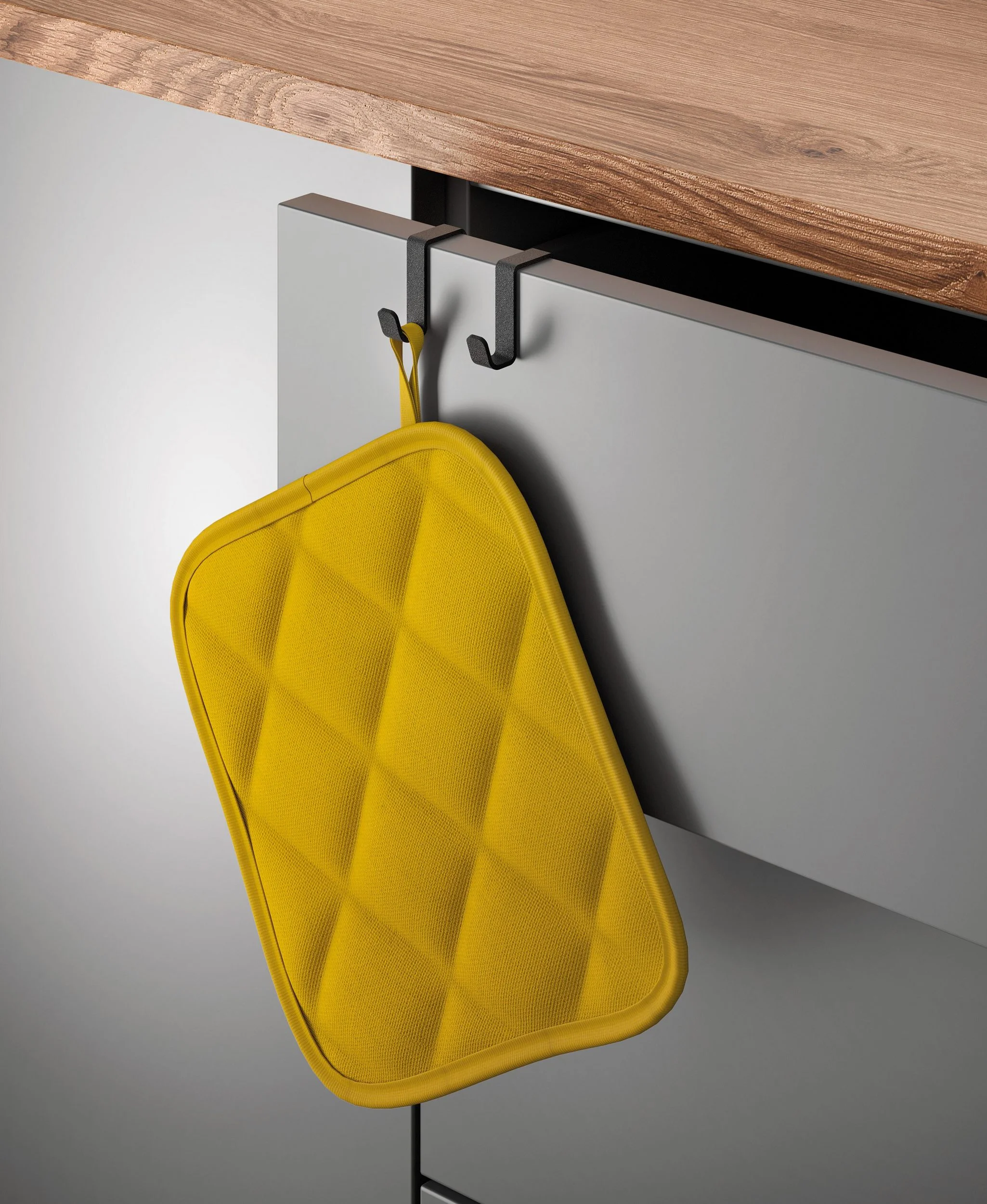Der Türhaken „Galileo Lava“ überzeugt durch funktionales Design und hochwertige Verarbeitung. Die exklusive TouchTherm® Beschichtung in mattem Schwarz verleiht dem Doppelhaken eine moderne, leicht rustikale Optik, die an handgefertigte schmiedeeiserne Elemente erinnert.