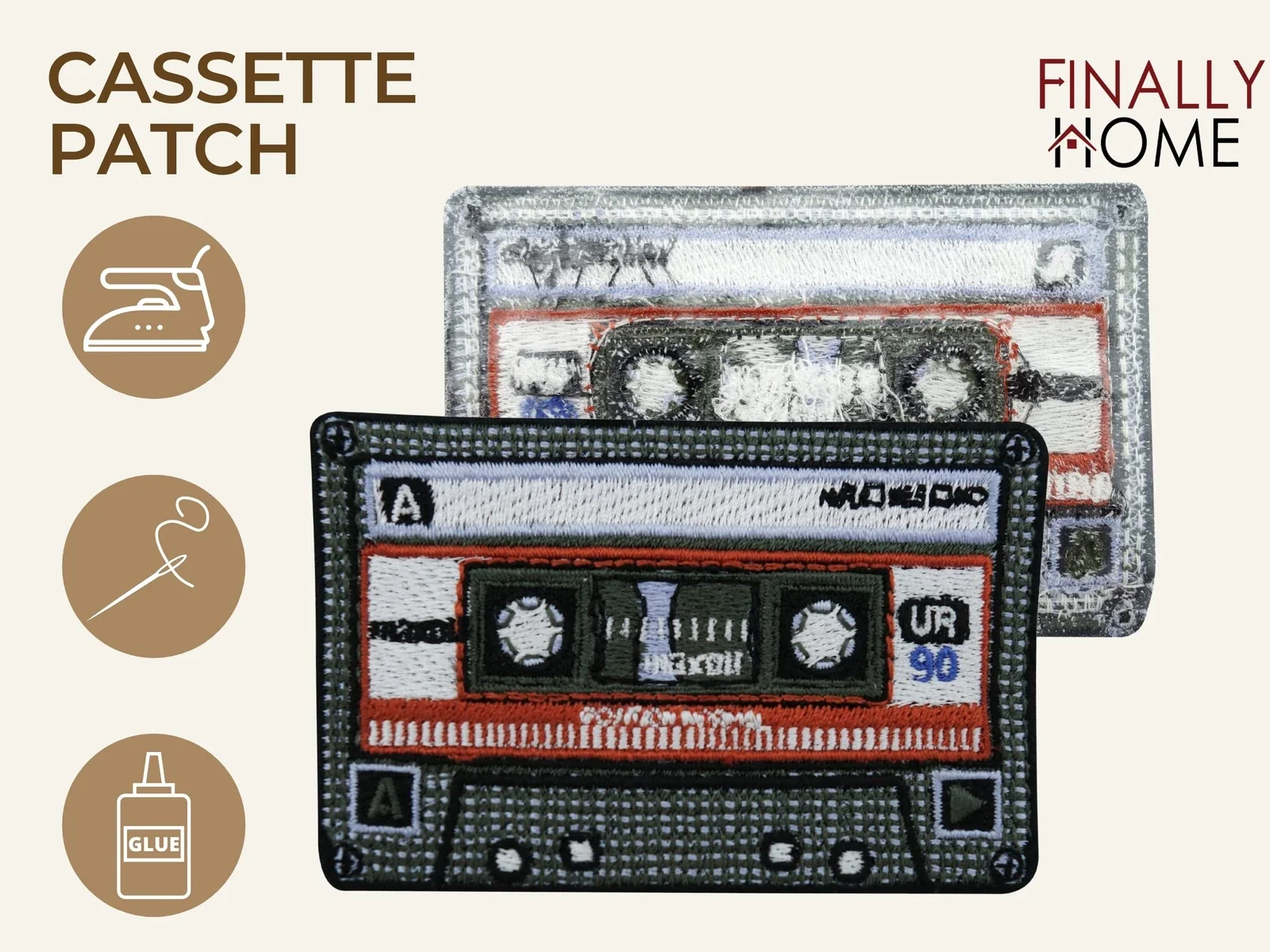 Produktinformationen "Vintage Retro Aufnäher 80er Kassette rot Bügelpatch zum Aufbügeln"