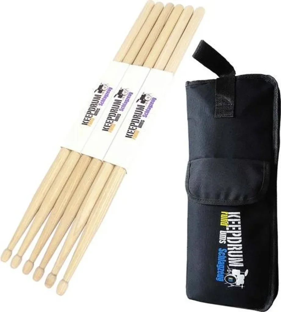 keepdrum 5A Drumsticks Hickory, 3 Paar mit Stickbag
